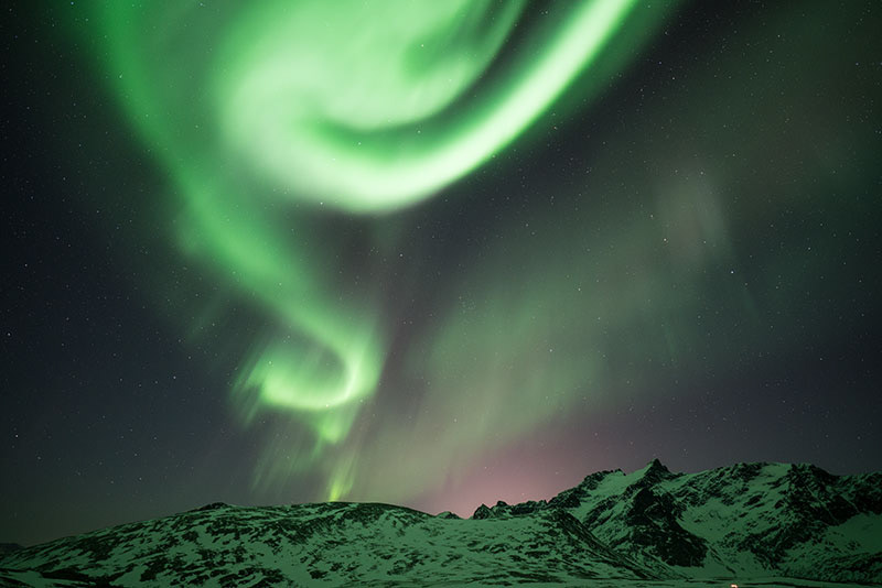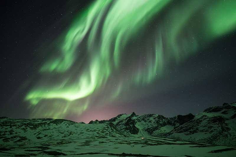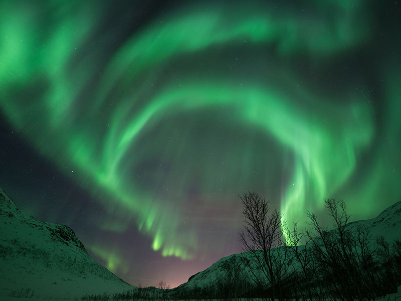 There are two roads I liked the best. The first one was the road to Tromvik. Along the road there were many places you can see northern lights. The very best location, which I did not see many people mentioned, was around a wild camping area, called Gloshaugen Camp, at GPS coordinates 69.745290, 18.353690. It was a mountain scene. This area also provided nice hiking opportunities.