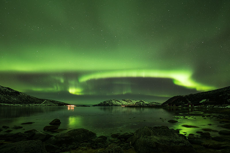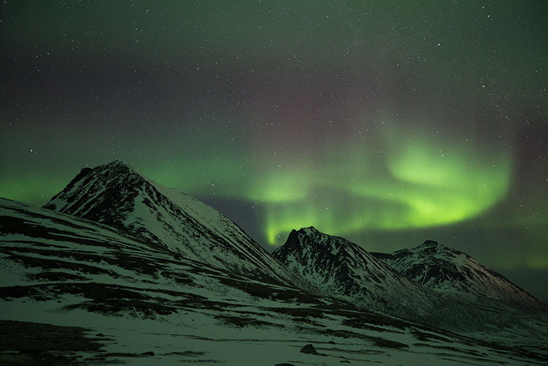 Another road I liked very much was highway 862 to Sommaroya. Again, there are many places you can see the northern lights. I liked the view point at GPS coordinates 69.621424, 18.058710. The area around Kattfjordvatnet (GPS coordinates 69.65061, 18.50677) was also very nice. My suggestion is to drive along those roads at a daytime to see the condition and decided by yourself. You want places with less or no city lights. Ideally the place would have some interesting objects on ground, for example, mountains or water.
